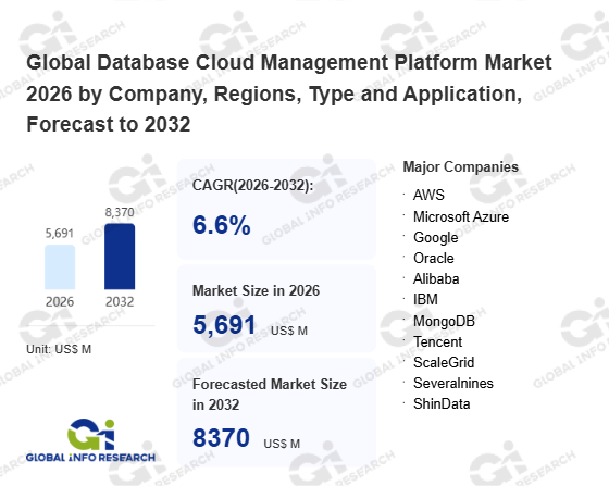 Global Info Research has recently published "Global Database Cloud Management Platform Market 2026 by Manufacturers, Regions, Type and Application, Forecast to 2032". This report systematically analyzes the current status, future trends (2021-2032), and competitive landscape of the global Database Cloud Management Platform market. It provides a quantitative analysis from the perspectives of type (Cloud Based、 On-Premises), application (Large Enterprise、 Medium-Sized Enterprise、 Small Companies), regional markets, and major manufacturers (AWS、 Microsoft Azure、 Google、 Oracle、 Alibaba、 IBM、 MongoDB、 Tencent、 ScaleGrid、 Severalnines、 ShinData), comprehensively assessing market opportunities and competitive dynamics.