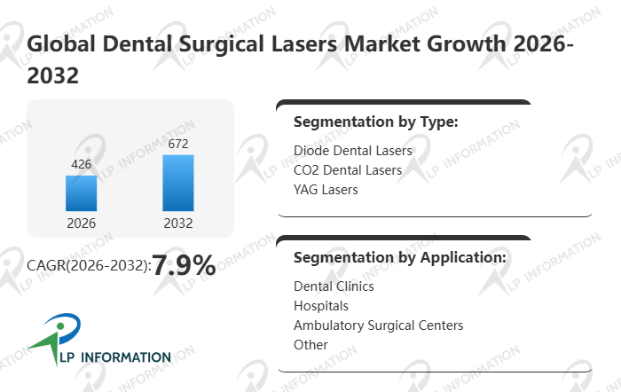 LP Information's latest "Global Dental Surgical Lasers Market Growth 2026-2032" aims to provide a comprehensive assessment of the industry's current status, competitive landscape, future trends, and opportunities. Dental Surgical Lasers report presents readers with a comprehensive, systematic, and forward-looking global keyword market analysis blueprint through a three-dimensional analytical framework: "Data Quantification (Size, Growth Rate, Market Share) + Structural Analysis (Products, Applications, Regions, Competition) + In-Depth Insights (Costs, Channels, Trends)."