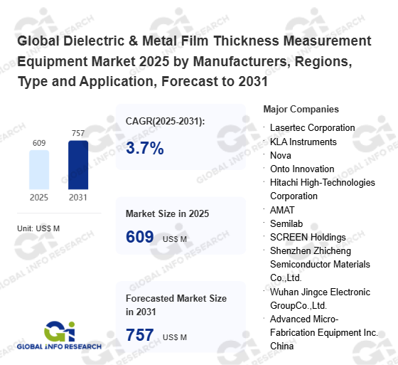 Global Info Research has recently published "Global Dielectric & Metal Film Thickness Measurement Equipment Market 2026 by Manufacturers, Regions, Type and Application, Forecast to 2032". This report systematically analyzes the global Dielectric & Metal Film Thickness Measurement Equipment market, providing multi-dimensional insights through type (Wafer Dielectric Thin Film Measurement Equipment、 Wafer Metal Thin Film Measurement Equipment), application (Logic Chip Field、 Memory Chip Field、 Power Chip & MEMS Chip & Compound Semiconductor Field、 Advanced Packaging Field), regional markets, and major manufacturers (Lasertec Corporation、 KLA Instruments、 Nova、 Onto Innovation、 Hitachi High-Technologies Corporation、 AMAT、 Semilab、 SCREEN Holdings、 Shenzhen Zhicheng Semiconductor Materials Co.,Ltd.、 Wuhan Jingce Electronic GroupCo.,Ltd.、 Advanced Micro-Fabrication Equipment Inc. China、 Skyverse Technology Co., Ltd.、 Creative Technology Limited、 RSIC scientific instrument(Shanghai)Co.,Ltd.), assessing the market status, trend evolution, and competitive landscape impact from 2021 to 2032.