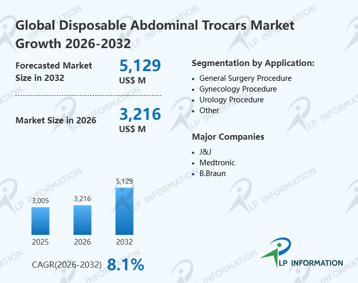 The global Disposable Abdominal Trocars market size is predicted to grow from US$ 3005 million in 2025 to US$ 5129 million in 2032; it is expected to grow at a CAGR of 8.1% from 2026 to 2032.