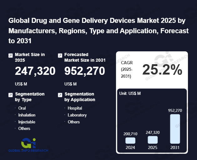 Global Info Research has recently published "Global Drug and Gene Delivery Devices Market 2026 by Manufacturers, Regions, Type and Application, Forecast to 2032". This report systematically analyzes the global Drug and Gene Delivery Devices market, providing multi-dimensional insights through type (Oral、 Inhalation、 Injectable、 Others), application (Hospital、 Laboratory、 Others), regional markets, and major manufacturers (Pfizer、 F. Hoffmann-La Roche、 Johnson and Johnson、 Novartis、 Bayer、 Becton、 Dickinson、 Uniqure、 SiBiono Gene、 Epeius Biotechnologies、 Shanghai Sunway Biotech、 Human Stem Cells、 Cipla、 Baxter International、 Nipro Corporation、 Roche、 Boehringer Ingelheim、 Allergan、 3M、 BD、 Catalent、 Valeant Pharmaceuticals、 Chiesi、 Phillips-Medisize), assessing the market status, trend evolution, and competitive landscape impact from 2021 to 2032.