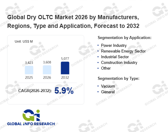 Global Info Research has recently published "Global Dry OLTC Market 2026 by Manufacturers, Regions, Type and Application, Forecast to 2032". This report systematically analyzes the current status, future trends (2021-2032), and competitive landscape of the global Dry OLTC market. It provides a quantitative analysis from the perspectives of type (Vacuum、 General), application (Power Industry、 Renewable Energy Sector、 Industrial Sector、 Construction Industry、 Other), regional markets, and major manufacturers (Maschinenfabrik Reinhausen、 Huaming Power Equipment、 Hitachi Energy、 Elprom Heavy Industries、 CTR Manufacturing Industries、 Easun MR、 Shandong Taikai Transformer、 On Load Gears), comprehensively assessing market opportunities and competitive dynamics.
