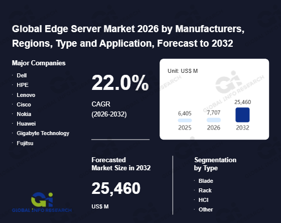 Global Info Research has recently published "Global Edge Server Market 2026 by Manufacturers, Regions, Type and Application, Forecast to 2032". This report systematically analyzes the current status, future trends (2021-2032), and competitive landscape of the global Edge Server market. It provides a quantitative analysis from the perspectives of type (Blade、 Rack、 HCI、 Other), application (Industrial Servers、 Commercial Servers), regional markets, and major manufacturers (Dell、 HPE、 Lenovo、 Cisco、 Nokia、 Huawei、 Gigabyte Technology、 Fujitsu、 ADLINK、 Atos、 Advantech、 Sugon、 Inspur、 OnLogic、 Trusme), comprehensively assessing market opportunities and competitive dynamics.
