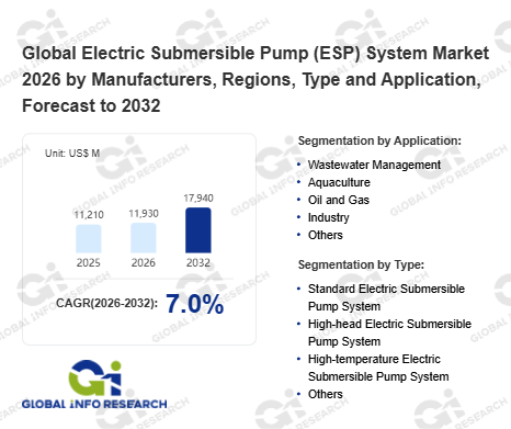Global Info Research has recently published "Global Electric Submersible Pump (ESP) System Market 2026 by Manufacturers, Regions, Type and Application, Forecast to 2032". This report systematically analyzes the global Electric Submersible Pump (ESP) System market, providing multi-dimensional insights through type (Standard Electric Submersible Pump System、 High-head Electric Submersible Pump System、 High-temperature Electric Submersible Pump System、 Others), application (Wastewater Management、 Aquaculture、 Oil and Gas、 Industry、 Others), regional markets, and major manufacturers (Schlumberger、 Baker Hughes、 Weatherford Internationa、 Halliburton、 Borets International、 Novomet Group、 General Electric、 Flowserve、 Sulzer、 Lishen Pump OF CNPC、 National Oilwell Varco、 Alkhorayef Petroleum、 DOS Canada、 Canadian Advanced ESP、 Grundfos), assessing the market status, trend evolution, and competitive landscape impact from 2021 to 2032.