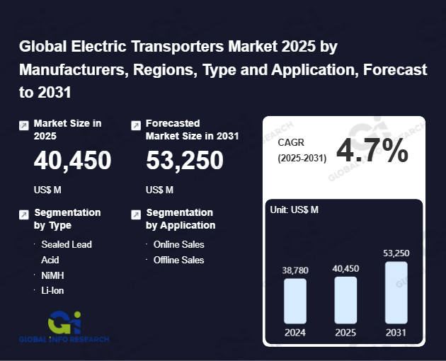 Global Info Research has recently published "Global Electric Transporters Market 2026 by Manufacturers, Regions, Type and Application, Forecast to 2032". This report systematically analyzes the global Electric Transporters market, providing multi-dimensional insights through type (Sealed Lead Acid、 NiMH、 Li-Ion), application (Online Sales、 Offline Sales), regional markets, and major manufacturers (Jiangsu Xinri E-Vehicle Co.,Ltd、 Terra Motors Corporation、 Gogoro Inc.、 Mahindra GenZe、 Vmoto Limited、 BMW Motorrad International、 AllCell Technologies LLC、 BOXX Corporation、 Kiwano、 Ninebot Inc.、 Hama GmbH & Co KG、 Honda Motor Co. Ltd.), assessing the market status, trend evolution, and competitive landscape impact from 2021 to 2032.