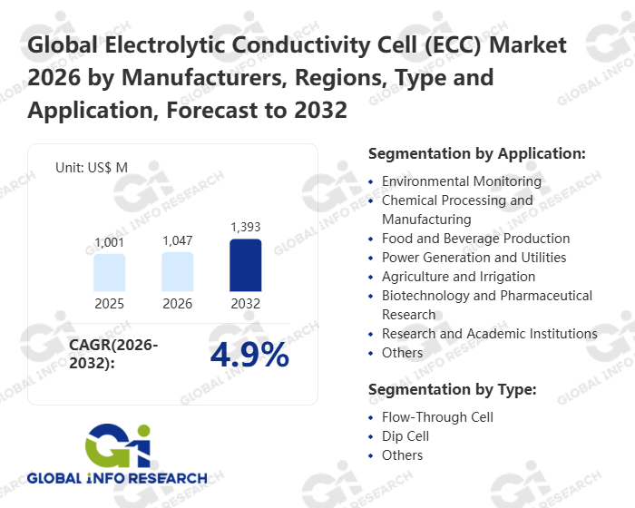 Global Info Research has recently published "Global Electrolytic Conductivity Cell (ECC) Market 2026 by Manufacturers, Regions, Type and Application, Forecast to 2032". This report systematically analyzes the global Electrolytic Conductivity Cell (ECC) market, providing multi-dimensional insights through type (Flow-Through Cell、 Dip Cell、 Others), application (Environmental Monitoring、 Chemical Processing and Manufacturing、 Food and Beverage Production、 Power Generation and Utilities、 Agriculture and Irrigation、 Biotechnology and Pharmaceutical Research、 Research and Academic Institutions、 Others), regional markets, and major manufacturers (Hach Company、 Mettler Toledo、 Hanna Instruments、 Thermo Fisher Scientific、 Endress+Hauser、 Yokogawa Electric Corporation、 OMEGA Engineering、 ABB Group、 In-Situ Inc.、 Analytical Technology Inc.), assessing the market status, trend evolution, and competitive landscape impact from 2021 to 2032.