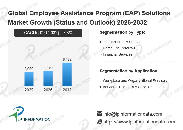The global Employee Assistance Program (EAP) Solutions market size is predicted to grow from US$ 5039 million in 2025 to US$ 8432 million in 2032; it is expected to grow at a CAGR of 7.8% from 2026 to 2032.