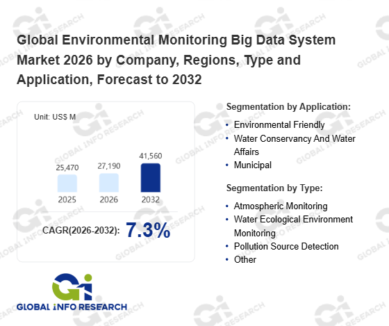 Global Info Research has recently published "Global Environmental Monitoring Big Data System Market 2026 by Manufacturers, Regions, Type and Application, Forecast to 2032". This report systematically analyzes the current status, future trends (2021-2032), and competitive landscape of the global Environmental Monitoring Big Data System market. It provides a quantitative analysis from the perspectives of type (Atmospheric Monitoring、 Water Ecological Environment Monitoring、 Pollution Source Detection、 Other), application (Environmental Friendly、 Water Conservancy And Water Affairs、 Municipal), regional markets, and major manufacturers (HACH、 WTW、 Thermo Fisher Scientific、 Xylem、 Sailhero、 Lihe Technology、 Focused Photonics、 Anhui Landun Photoelectron、 Anhui Wanyi Science and Technology、 RocKontrol Technology Group、 BESCIENT TECHNOLOGIES), comprehensively assessing market opportunities and competitive dynamics.