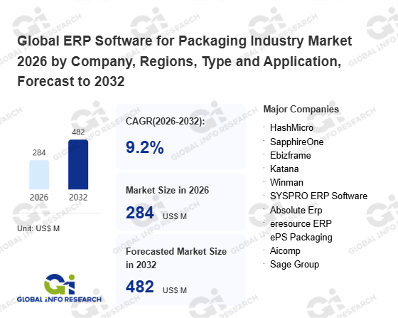 Global Info Research has recently published "Global ERP Software for Packaging Industry Market 2026 by Manufacturers, Regions, Type and Application, Forecast to 2032". This report systematically analyzes the global ERP Software for Packaging Industry market, providing multi-dimensional insights through type (Cloud-based、 On Premise), application (Large Enterprises、 SMEs), regional markets, and major manufacturers (HashMicro、 SapphireOne、 Ebizframe、 Katana、 Winman、 SYSPRO ERP Software、 Absolute Erp、 eresource ERP、 ePS Packaging、 Aicomp、 Sage Group), assessing the market status, trend evolution, and competitive landscape impact from 2021 to 2032.
