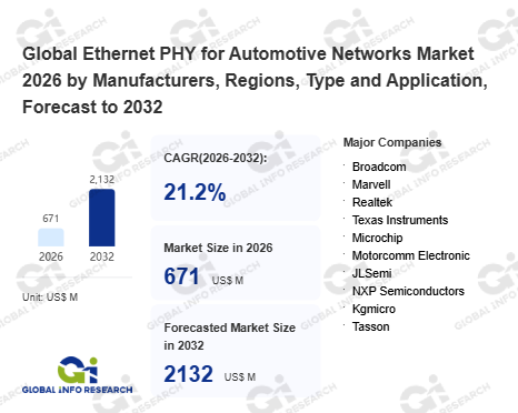 Global Info Research has recently published "Global Ethernet PHY for Automotive Networks Market 2026 by Manufacturers, Regions, Type and Application, Forecast to 2032". This report systematically analyzes the global Ethernet PHY for Automotive Networks market, providing multi-dimensional insights through type (Single Port Ethernet PHY、 Dual Port Ethernet PHY), application (Passenger Vehicle、 Commercial Vehicle), regional markets, and major manufacturers (Broadcom、 Marvell、 Realtek、 Texas Instruments、 Microchip、 Motorcomm Electronic、 JLSemi、 NXP Semiconductors、 Kgmicro、 Tasson), assessing the market status, trend evolution, and competitive landscape impact from 2021 to 2032.