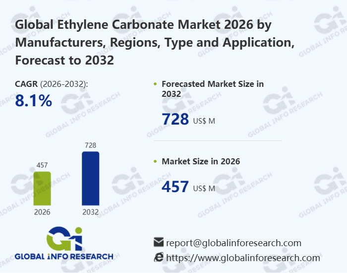 Global Info Research has recently published "Global Ethylene Carbonate Market 2026 by Manufacturers, Regions, Type and Application, Forecast to 2032". This report systematically analyzes the global Ethylene Carbonate market, providing multi-dimensional insights through type (Liquid Ethylene Carbonate、 Solid Ethylene Carbonate), application (Battery Electrolytes、 Intermediates and Agents、 Textile Industry、 Others), regional markets, and major manufacturers (BASF、 Mitsubishi Chemical、 TOAGOSEI、 Huntsman、 OUCC、 Lixing Chemical、 Zhongke Hongye、 Haike、 Shandong Shida Shenghua、 Kong Lung、 Hengyang New Energy、 OXIRAN), assessing the market status, trend evolution, and competitive landscape impact from 2021 to 2032.