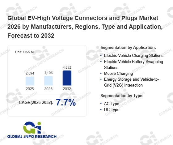 Global Info Research has recently published "Global EV-High Voltage Connectors and Plugs Market 2026 by Manufacturers, Regions, Type and Application, Forecast to 2032". This report systematically analyzes the current status, future trends (2021-2032), and competitive landscape of the global EV-High Voltage Connectors and Plugs market. It provides a quantitative analysis from the perspectives of type (AC Type、 DC Type), application (Electric Vehicle Charging Stations、 Electric Vehicle Battery Swapping Stations、 Mobile Charging、 Energy Storage and Vehicle-to-Grid (V2G) Interaction), regional markets, and major manufacturers (TE Connectivity、 Amphenol、 Yazaki、 Aptiv、 Sumitomo Electric、 Molex、 Rosenberger、 Hirose、 JAE、 ITT、 HARTING、 Phoenix Contact、 KOSTAL、 Hirschmann Automotive、 HUBER+SUHNER、 Mennekes、 Staubli、 JONHON、 Yonggui Electric、 KET、 Positronic), comprehensively assessing market opportunities and competitive dynamics.