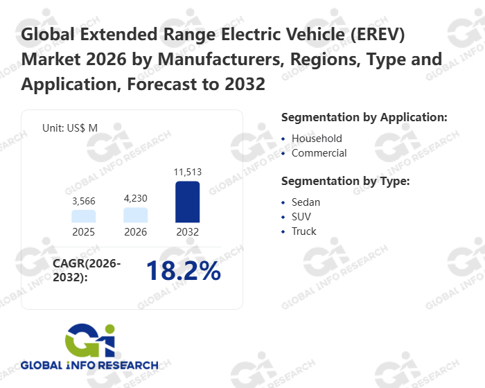 Global Info Research has recently published "Global Extended Range Electric Vehicle (EREV) Market 2026 by Manufacturers, Regions, Type and Application, Forecast to 2032". This report systematically analyzes the global Extended Range Electric Vehicle (EREV) market, providing multi-dimensional insights through type (Sedan、 SUV、 Truck), application (Household、 Commercial), regional markets, and major manufacturers (Ram Trucks、 Ford、 Scout Motors、 General Motors、 KIA、 Toyota Motor、 Nissan Motor、 LEVC、 Volkswagen、 Hyperion、 SAIC MOTOR、 Li Auto、 GAC Group、 Dongfeng Motor、 Seres Auto (HUAWEI)、 Leapmotor、 DENZA、 Changan Automobile、 Hozon New Energy Automobile), assessing the market status, trend evolution, and competitive landscape impact from 2021 to 2032.