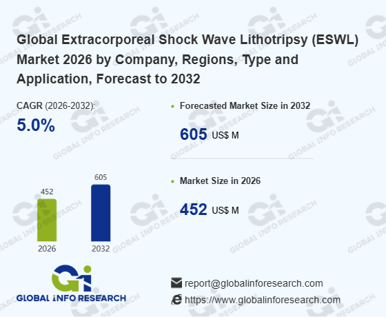 Global Info Research has recently published "Global Extracorporeal Shock Wave Lithotripsy (ESWL) Market 2026 by Manufacturers, Regions, Type and Application, Forecast to 2032". This report systematically analyzes the global Extracorporeal Shock Wave Lithotripsy (ESWL) market, providing multi-dimensional insights through type (Fluoroscopy-Guided Localization、 Ultrasound-Guided Localization、 X-Ray + Ultrasound), application (Kidney Stone、 Biliary Calculi、 Salivary Stones、 Pancreatic Stones、 Others), regional markets, and major manufacturers (WIKKON (AMTH)、 HYDE、 Sody、 Haibin、 Comermy、 New Element Medical、 Dornier、 Richard-Wolf、 MTS、 Initia (DirexGroup)、 Siemens、 Focal One (EDAP TMS)、 Storz、 Medispec、 ELMED、 Inceler Medikal、 US、 Allengers), assessing the market status, trend evolution, and competitive landscape impact from 2021 to 2032.
