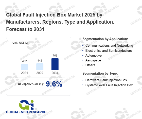 Global Info Research has recently published "Global Fault Injection Box Market 2026 by Manufacturers, Regions, Type and Application, Forecast to 2032". This report systematically analyzes the global Fault Injection Box market, providing multi-dimensional insights through type (Hardware Fault Injection Box、 System-Level Fault Injection Box), application (Communications and Networking、 Electronics and Semiconductors、 Automotive、 Aerospace、 Others), regional markets, and major manufacturers (National Instruments、 Keysight Technologies、 VIAVI Solutions、 Rohde & Schwarz、 Tektronix、 Vector Informatik、 ETAS、 PXI Technologies、 Intrepid Control Systems、 DEWESoft、 Accel-RF、 Pickering Interfaces、 TTE Systems、 Talon Instruments、 SPEA、 ADLINK Technology、 Keliang Information Technology), assessing the market status, trend evolution, and competitive landscape impact from 2021 to 2032.