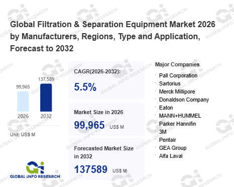 Global Info Research has recently published "Global Filtration & Separation Equipment Market 2026 by Manufacturers, Regions, Type and Application, Forecast to 2032". This report systematically analyzes the global Filtration & Separation Equipment market, providing multi-dimensional insights through type (Coarse Filtration、 Fine Filtration、 Microfiltration、 Ultrafiltration), application (General Manufacturing、 Semiconductor & Electronics、 Food & Beverage、 Pharmaceuticals、 Chemical Industry、 Water Treatment & Environmental、 Others), regional markets, and major manufacturers (Pall Corporation、 Sartorius、 Merck Millipore、 Donaldson Company、 Eaton、 MANN+HUMMEL、 Parker Hannifin、 3M、 Pentair、 GEA Group、 Alfa Laval、 ANDRITZ、 Camfil、 SPX FLOW、 Flottweg、 Evoqua Water Technologies、 Veolia Water Technologies、 Filtration Group、 HYDAC、 Xylem、 Sulzer、 WesTech Engineering、 FLSmidth、 Metso Outotec), assessing the market status, trend evolution, and competitive landscape impact from 2021 to 2032.