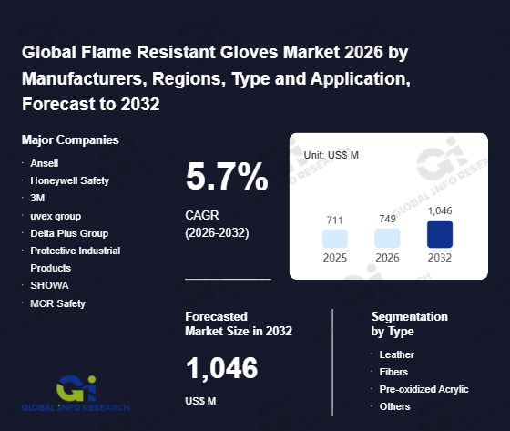 Global Info Research has recently published "Global Flame Resistant Gloves Market 2026 by Manufacturers, Regions, Type and Application, Forecast to 2032". This report systematically analyzes the current status, future trends (2021-2032), and competitive landscape of the global Flame Resistant Gloves market. It provides a quantitative analysis from the perspectives of type (Leather、 Fibers、 Pre-oxidized Acrylic、 Others), application (Firefighting and Emergency Response Industry、 Petrochemical Industry、 Metallurgical and Foundry Industry、 Others), regional markets, and major manufacturers (Ansell、 Honeywell Safety、 3M、 uvex group、 Delta Plus Group、 Protective Industrial Products、 SHOWA、 MCR Safety、 Superior Glove、 Ejendals、 MAPA Professional、 Portwest、 Radians、 Wells Lamont Industrial、 Magid Glove & Safety、 Youngstown Glove Company、 Mechanix Wear、 Ironclad Performance Wear、 HexArmor、 Tilsatec), comprehensively assessing market opportunities and competitive dynamics.