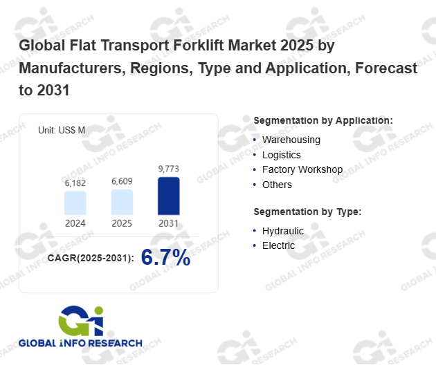 Global Info Research has recently published "Global Flat Transport Forklift Market 2026 by Manufacturers, Regions, Type and Application, Forecast to 2032". This report systematically analyzes the global Flat Transport Forklift market, providing multi-dimensional insights through type (Hydraulic、 Electric), application (Warehousing、 Logistics、 Factory Workshop、 Others), regional markets, and major manufacturers (Toyota、 Crown Equipment、 Jungheinrich、 Mitsubishi、 Sumitomo Nacco Forklift、 Geekplus、 AiTEN Robotics、 Multiway Robotics、 SIASUN Robot & Automation、 Banyitong Technology、 Innovix Robotics、 Sany Group、 Lianhe Tech、 Hangcha Forklift、 Hikrobot、 Lisen Automation), assessing the market status, trend evolution, and competitive landscape impact from 2021 to 2032.