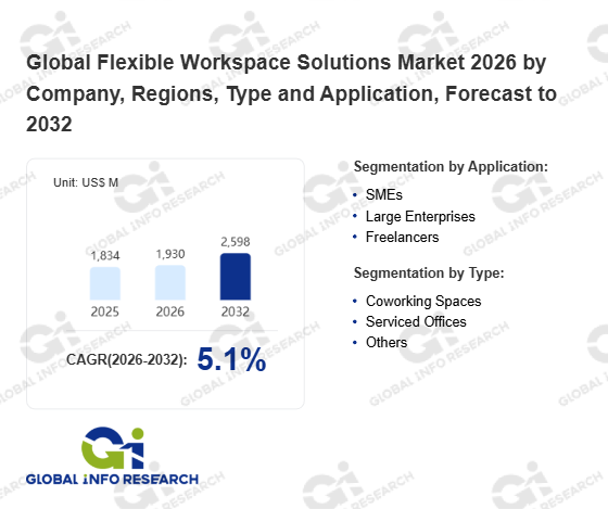 Global Info Research has recently published "Global Flexible Workspace Solutions Market 2026 by Manufacturers, Regions, Type and Application, Forecast to 2032". This report systematically analyzes the current status, future trends (2021-2032), and competitive landscape of the global Flexible Workspace Solutions market. It provides a quantitative analysis from the perspectives of type (Coworking Spaces、 Serviced Offices、 Others), application (SMEs、 Large Enterprises、 Freelancers), regional markets, and major manufacturers (Industrious、 WeWork、 Kadence、 CityCentral、 Servcorp、 The Executive Centre、 IWG、 JustCo、 Office Evolution、 Flexible Workspace Solutions、 Mindspace、 Convene、 Knotel (Newmark)、 IndiQube、 Interoffice、 Rubberdesk、 Regus、 OfficeHub、 Spaces Works), comprehensively assessing market opportunities and competitive dynamics.