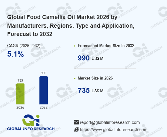 Global Info Research has recently published "Global Food Camellia Oil Market 2026 by Manufacturers, Regions, Type and Application, Forecast to 2032". This report systematically analyzes the global Food Camellia Oil market, providing multi-dimensional insights through type (Extra Virgin Camellia Oil、 Pure Camellia Oil), application (Food、 Pharmaceutical、 Other), regional markets, and major manufacturers (Hunan Guitaitai Camellia Oil Technology Co.,Ltd.、 Laozhiqin (Fujian) Oil Co., Ltd、 Hunan Jinhao Camellia Oil Corp., Ltd.、 DACHENGCANG、 Hunan Shanrun Camellia Oil Technology Development Co.,LTD、 JiangXi YouNiBao Agricultural Science And Technology Co., LTD、 Green Sea、 Jiusheng、 Runxin、 Yuansen), assessing the market status, trend evolution, and competitive landscape impact from 2021 to 2032.
