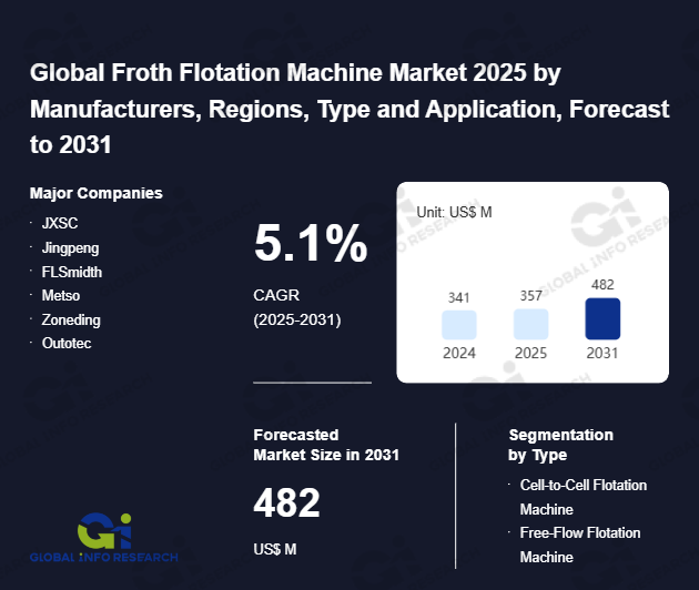 Global Info Research has recently published "Global Froth Flotation Machine Market 2026 by Manufacturers, Regions, Type and Application, Forecast to 2032". This report systematically analyzes the current status, future trends (2021-2032), and competitive landscape of the global Froth Flotation Machine market. It provides a quantitative analysis from the perspectives of type (Cell-to-Cell Flotation Machine、 Free-Flow Flotation Machine), application (Mining、 Industry、 Others), regional markets, and major manufacturers (JXSC、 Jingpeng、 FLSmidth、 Metso、 Zoneding、 Outotec), comprehensively assessing market opportunities and competitive dynamics.