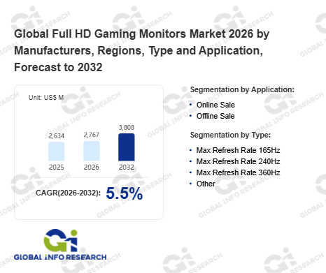 Global Info Research has recently published "Global Full HD Gaming Monitors Market 2026 by Manufacturers, Regions, Type and Application, Forecast to 2032". This report systematically analyzes the global Full HD Gaming Monitors market, providing multi-dimensional insights through type (Max Refresh Rate 165Hz、 Max Refresh Rate 240Hz、 Max Refresh Rate 360Hz、 Other), application (Online Sale、 Offline Sale), regional markets, and major manufacturers (ASUS、 HP、 ViewSonic、 MSI、 Dell、 Acer、 Samsung、 LG、 Sceptre、 Viotek、 BenQ、 Philips、 Lenovo、 Gigabyte Technology、 Razer), assessing the market status, trend evolution, and competitive landscape impact from 2021 to 2032.