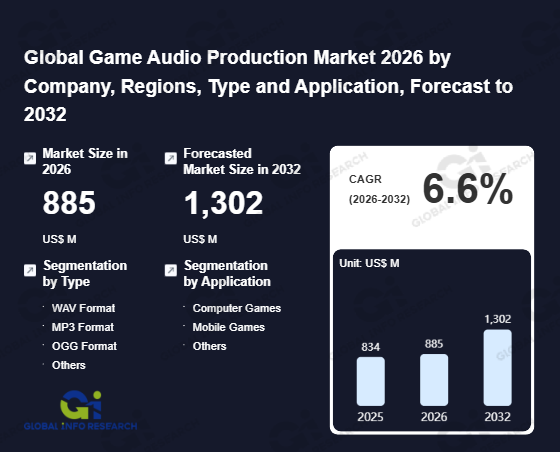 Global Info Research has recently published "Global Game Audio Production Market 2026 by Manufacturers, Regions, Type and Application, Forecast to 2032". This report systematically analyzes the current status, future trends (2021-2032), and competitive landscape of the global Game Audio Production market. It provides a quantitative analysis from the perspectives of type (WAV Format、 MP3 Format、 OGG Format、 Others), application (Computer Games、 Mobile Games、 Others), regional markets, and major manufacturers (Dynamedion、 Hexany Audio、 Moonwalk Audio、 Universalmusic、 Somatone、 Game Music Collective、 7Sounds、 GL33k、 Vanguard-Sound、 The One Studio、 Side Global、 The Audio Guys、 Woofer8、 Demute), comprehensively assessing market opportunities and competitive dynamics.