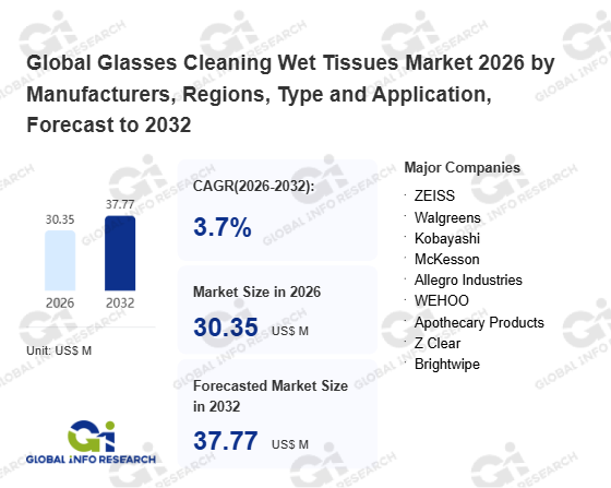 Global Info Research has recently published "Global Glasses Cleaning Wet Tissues Market 2026 by Manufacturers, Regions, Type and Application, Forecast to 2032". This report systematically analyzes the current status, future trends (2021-2032), and competitive landscape of the global Glasses Cleaning Wet Tissues market. It provides a quantitative analysis from the perspectives of type (Pre-Moistened、 Dry), application (Myopia Glasses、 Reading Glasses、 Sunglasses、 Others), regional markets, and major manufacturers (ZEISS、 Walgreens、 Kobayashi、 McKesson、 Allegro Industries、 WEHOO、 Apothecary Products、 Z Clear、 Brightwipe), comprehensively assessing market opportunities and competitive dynamics.