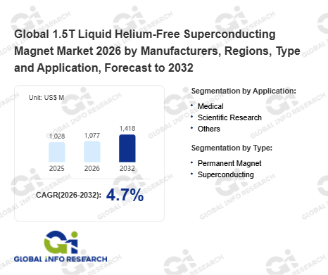 Global Info Research has recently published "Global 1.5T Liquid Helium-Free Superconducting Magnet Market 2026 by Manufacturers, Regions, Type and Application, Forecast to 2032". This report systematically analyzes the global 1.5T Liquid Helium-Free Superconducting Magnet market, providing multi-dimensional insights through type (Permanent Magnet、 Superconducting), application (Medical、 Scientific Research、 Others), regional markets, and major manufacturers (Philips、 MR Solutions、 Magnetica、 Cryogenic、 JASTEC、 Chenguang Medical、 Xingaoyi Medical、 Western Superconductivity、 Ningbo Jansen NMR), assessing the market status, trend evolution, and competitive landscape impact from 2021 to 2032.