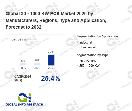 Global Info Research has recently published "Global 30 - 1000 KW PCS Market 2026 by Manufacturers, Regions, Type and Application, Forecast to 2032". This report systematically analyzes the global 30 - 1000 KW PCS market, providing multi-dimensional insights through type (30 - 250 KW、 250 - 1000 KW), application (Industrial、 Commercial), regional markets, and major manufacturers (SUNGROW、 SMA、 Shenzhen Inovance Technology、 Shenzhen Sinexcel Electric、 Kehua、 Tesla、 TMEIC、 GoodWe、 Ingeteam、 Nidec、 GE、 Sineng Electric、 Shenzhen Kstar Science and Technology、 Dynapower、 Growatt、 Beijing In-Power Electric、 HUAWEI、 SolarEdge、 Shenzhen Sofarsolar、 Beijing Soaring Electric Technology、 NR Engineering), assessing the market status, trend evolution, and competitive landscape impact from 2021 to 2032.
