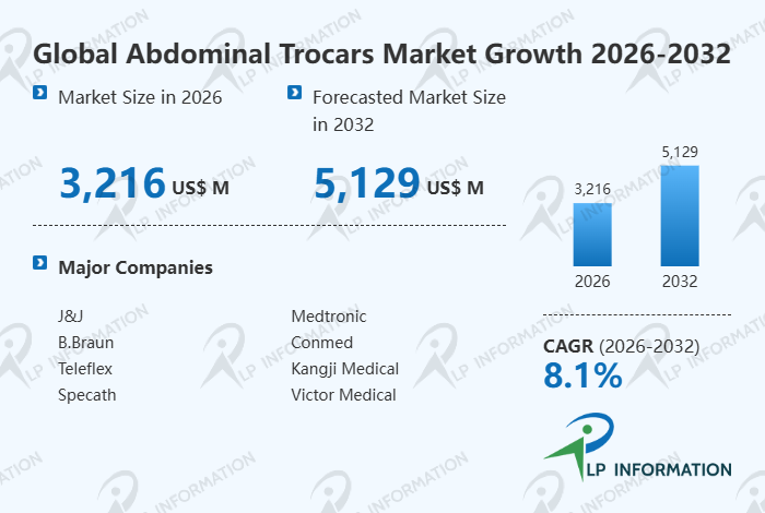The global Abdominal Trocars market size is predicted to grow from US$ 3005 million in 2025 to US$ 5129 million in 2032; it is expected to grow at a CAGR of 8.1% from 2026 to 2032.
