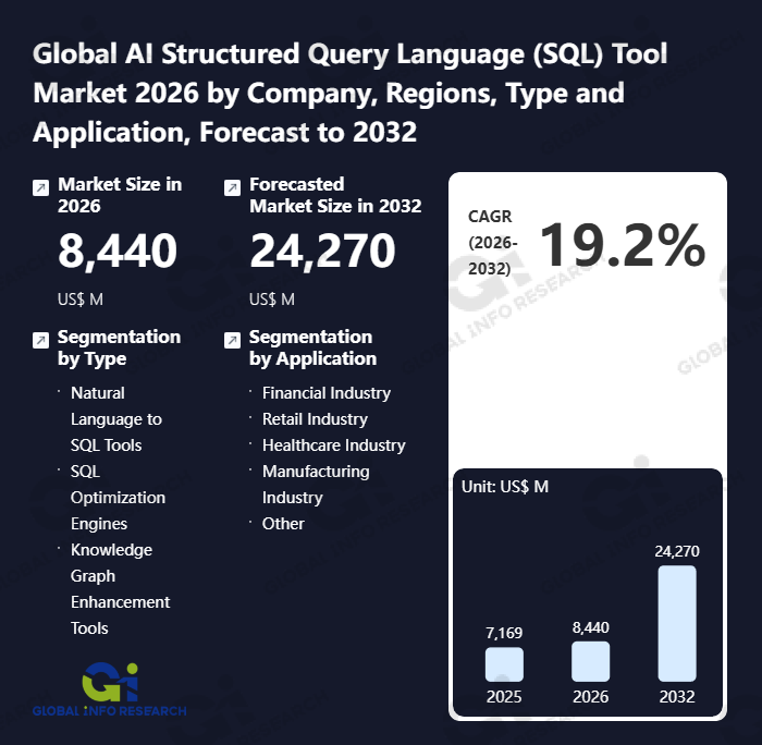 Global Info Research has recently published "Global AI Structured Query Language (SQL) Tool Market 2026 by Manufacturers, Regions, Type and Application, Forecast to 2032". This report systematically analyzes the current status, future trends (2021-2032), and competitive landscape of the global AI Structured Query Language (SQL) Tool market. It provides a quantitative analysis from the perspectives of type (Natural Language to SQL Tools、 SQL Optimization Engines、 Knowledge Graph Enhancement Tools), application (Financial Industry、 Retail Industry、 Healthcare Industry、 Manufacturing Industry、 Other), regional markets, and major manufacturers (Ant Financial、 Guanyuan Data、 Huawei、 Baidu AI Cloud、 SenseTime、 Sichuan Jinbiao Network Technology、 Databricks、 SambaNova Systems、 Haitian Ruisheng、 Inspur Information、 China Unicom、 Yunce Data、 StarRing Technology、 Kaiyun、 Scale AI、 Dingdian Data、 Price2Spy、 Competera、 OmniaRetail、 Keepa), comprehensively assessing market opportunities and competitive dynamics.