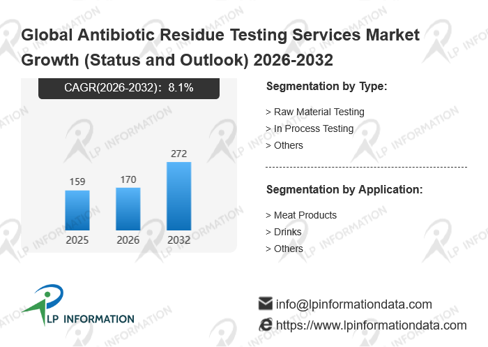 The global Antibiotic Residue Testing Services market size is predicted to grow from US$ 159 million in 2025 to US$ 272 million in 2032; it is expected to grow at a CAGR of 8.1% from 2026 to 2032.