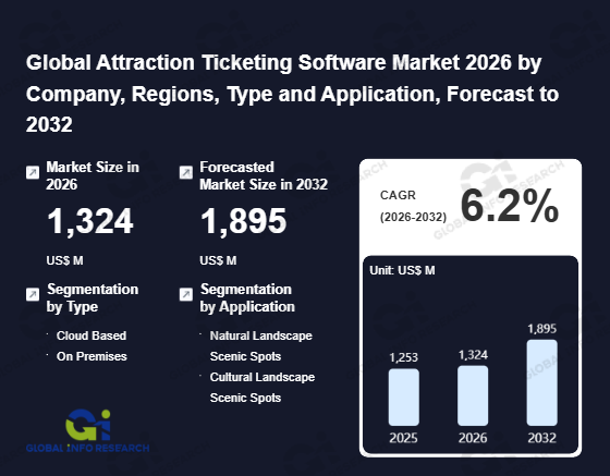 Global Info Research has recently published "Global Attraction Ticketing Software Market 2026 by Manufacturers, Regions, Type and Application, Forecast to 2032". This report systematically analyzes the global Attraction Ticketing Software market, providing multi-dimensional insights through type (Cloud Based、 On Premises), application (Natural Landscape Scenic Spots、 Cultural Landscape Scenic Spots), regional markets, and major manufacturers (TicketingHub、 Rezdy、 accesso、 Booking Boss、 Gateway Ticketing Systems、 FareHarbor、 Access Group、 Beyonk、 RocketRez、 ROLLER、 CM.com、 Semnox), assessing the market status, trend evolution, and competitive landscape impact from 2021 to 2032.