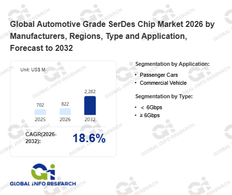 Global Info Research has recently published "Global Automotive Grade SerDes Chip Market 2026 by Manufacturers, Regions, Type and Application, Forecast to 2032". This report systematically analyzes the global Automotive Grade SerDes Chip market, providing multi-dimensional insights through type (< 6Gbps、 ≥ 6Gbps), application (Passenger Cars、 Commercial Vehicle), regional markets, and major manufacturers (Analog Devices (Maxim)、 Texas Instruments、 Inova Semiconductors、 Sony Semiconductor、 ROHM Semiconductor、 THine Electronics、 Renesas、 Goke Microelectronics、 Ruifake Semiconductor、 VelinkTech), assessing the market status, trend evolution, and competitive landscape impact from 2021 to 2032.