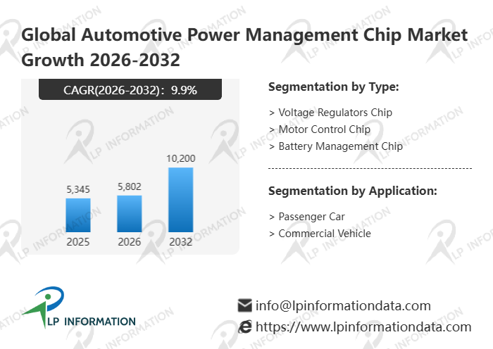 The global Automotive Power Management Chip market size is predicted to grow from US$ 5345 million in 2025 to US$ 10200 million in 2032; it is expected to grow at a CAGR of 9.9% from 2026 to 2032.