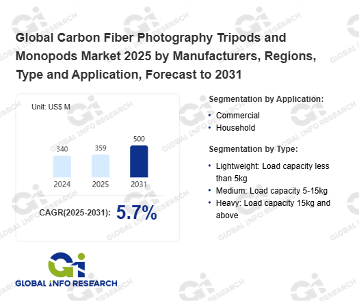 Global Info Research has recently published "Global Carbon Fiber Photography Tripods and Monopods Market 2026 by Manufacturers, Regions, Type and Application, Forecast to 2032". This report systematically analyzes the global Carbon Fiber Photography Tripods and Monopods market, providing multi-dimensional insights through type (Lightweight: Load capacity less than 5kg、 Medium: Load capacity 5-15kg、 Heavy: Load capacity 15kg and above), application (Commercial、 Household), regional markets, and major manufacturers (Gitzo、 Benro、 Manfrotto、 Joby、 Sachtler、 Vanguard、 Sirui、 Viltrox、 Fotopro), assessing the market status, trend evolution, and competitive landscape impact from 2021 to 2032.
