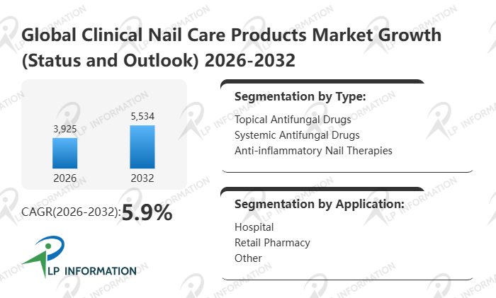 LP Information's latest "Global Clinical Nail Care Products Market Growth 2026-2032" aims to provide a comprehensive assessment of the industry's current status, competitive landscape, future trends, and opportunities. Clinical Nail Care Products report presents readers with a comprehensive, systematic, and forward-looking global keyword market analysis blueprint through a three-dimensional analytical framework: "Data Quantification (Size, Growth Rate, Market Share) + Structural Analysis (Products, Applications, Regions, Competition) + In-Depth Insights (Costs, Channels, Trends)."
