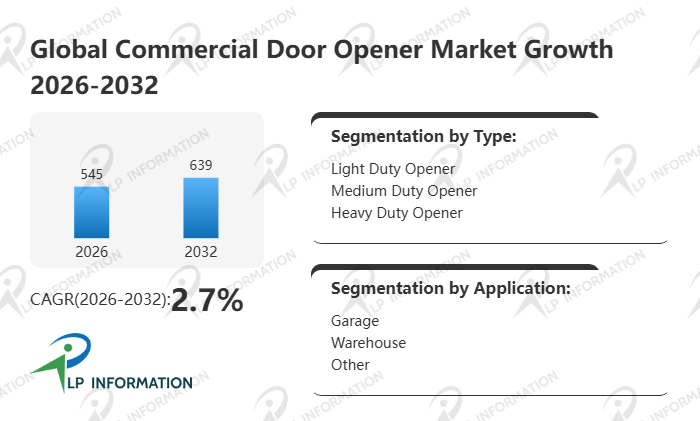 The global Commercial Door Opener market size is predicted to grow from US$ 533 million in 2025 to US$ 639 million in 2032; it is expected to grow at a CAGR of 2.7% from 2026 to 2032.