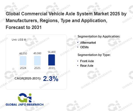 Global Info Research has recently published "Global Commercial Vehicle Axle System Market 2026 by Manufacturers, Regions, Type and Application, Forecast to 2032". This report systematically analyzes the global Commercial Vehicle Axle System market, providing multi-dimensional insights through type (Front Axle、 Rear Axle), application (Aftermarket、 OEMs), regional markets, and major manufacturers (AAM、 Meritor、 DANA、 ZF、 PRESS KOGYO、 HANDE Axle、 BENTELER、 Sichuan Jian'an、 KOFCO、 Gestamp、 Shandong Heavy Industry、 Hyundai Dymos、 Magneti Marelli、 IJT Technology Holdings、 SINOTRUK、 SAF-HOLLAND、 SG Automotive), assessing the market status, trend evolution, and competitive landscape impact from 2021 to 2032.