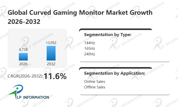 The global Curved Gaming Monitor market size is predicted to grow from US$ 6080 million in 2025 to US$ 13052 million in 2032; it is expected to grow at a CAGR of 11.6% from 2026 to 2032.