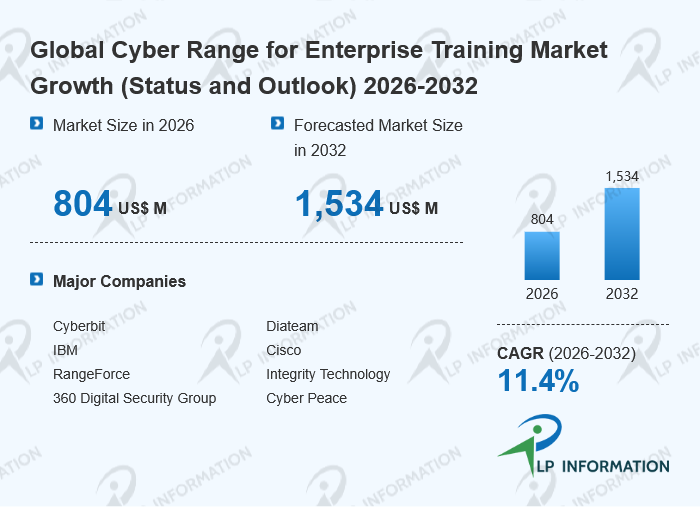 The global Cyber Range for Enterprise Training market size is predicted to grow from US$ 732 million in 2025 to US$ 1534 million in 2032; it is expected to grow at a CAGR of 11.4% from 2026 to 2032.