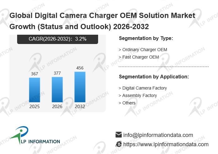 The global Digital Camera Charger OEM Solution market size is predicted to grow from US$ 367 million in 2025 to US$ 456 million in 2032; it is expected to grow at a CAGR of 3.2% from 2026 to 2032.