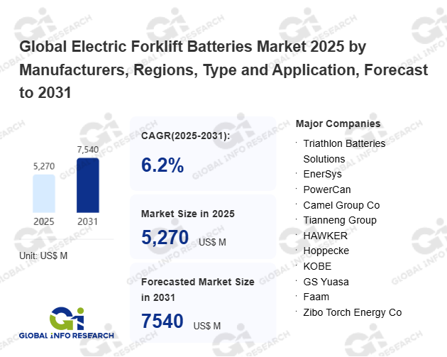 Global Info Research has recently published "Global Electric Forklift Batteries Market 2026 by Manufacturers, Regions, Type and Application, Forecast to 2032". This report systematically analyzes the global Electric Forklift Batteries market, providing multi-dimensional insights through type (Lead-Acid Batteries、 Lithium-Ion Batteries、 Others), application (Industrial、 Commercial), regional markets, and major manufacturers (Triathlon Batteries Solutions、 EnerSys、 PowerCan、 Camel Group Co、 Tianneng Group、 HAWKER、 Hoppecke、 KOBE、 GS Yuasa、 Faam、 Zibo Torch Energy Co、 Yantai Goldentide Unikodi Battery Co、 Leoch International Technology Limited、 Anhui Xunqi、 Crown Battery、 Storage Battery Systems), assessing the market status, trend evolution, and competitive landscape impact from 2021 to 2032.