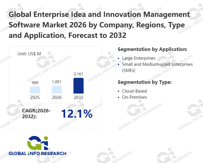 Global Info Research has recently published "Global Enterprise Idea and Innovation Management Software Market 2026 by Manufacturers, Regions, Type and Application, Forecast to 2032". This report systematically analyzes the global Enterprise Idea and Innovation Management Software market, providing multi-dimensional insights through type (Cloud-Based、 On-Premises), application (Large Enterprises、 Small and Medium-sized Enterprises (SMEs)), regional markets, and major manufacturers (Planview (Spigit)、 Brightidea、 IdeaScale、 Wellspring (formerly Sopheon)、 HYPE Innovation(Planbox & Viima)、 IdeaConnection、 SAP、 Qmarkets、 Exago、 iEnabler、 Rever、 innosabi、 Itonics、 Innovation Cloud、 Wazoku、 Crowdicity(Medallia)、 Skipso、 ServiceNow), assessing the market status, trend evolution, and competitive landscape impact from 2021 to 2032.