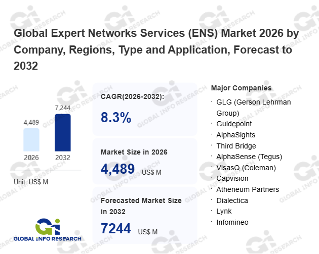 Global Info Research has recently published "Global Expert Networks Services (ENS) Market 2026 by Manufacturers, Regions, Type and Application, Forecast to 2032". This report systematically analyzes the current status, future trends (2021-2032), and competitive landscape of the global Expert Networks Services (ENS) market. It provides a quantitative analysis from the perspectives of type (Expert Consultations、 Expert Research Surveys、 Conference Development、 Integrated Insights、 Other), application (Large Enterprises、 SMEs), regional markets, and major manufacturers (GLG (Gerson Lehrman Group)、 Guidepoint、 AlphaSights、 Third Bridge、 AlphaSense (Tegus)、 VisasQ (Coleman)、 Capvision、 Atheneum Partners、 Dialectica、 Lynk、 Infomineo、 Zintro、 NewtonX、 Arbolus、 Arches、 Cansulta、 Business Connect China、 Insight Alpha、 Infollion、 Clarity (Startups.com)、 Maven Research、 Xperts Council、 Nextyn、 DeMatteo Research、 Experfy、 Inex One、 EarlyBirds、 ExpertConnect、 Futureminds Consulting、 Expert Network Calls), comprehensively assessing market opportunities and competitive dynamics.