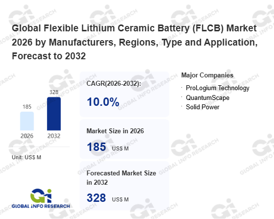Global Info Research has recently published "Global Flexible Lithium Ceramic Battery (FLCB) Market 2026 by Manufacturers, Regions, Type and Application, Forecast to 2032". This report systematically analyzes the current status, future trends (2021-2032), and competitive landscape of the global Flexible Lithium Ceramic Battery (FLCB) market. It provides a quantitative analysis from the perspectives of type (> 0.5mm、 ≤ 0.5 mm), application (Consumer Electronics (Wearables)、 Internet of Things、 Aerospace、 Others), regional markets, and major manufacturers (ProLogium Technology、 QuantumScape、 Solid Power), comprehensively assessing market opportunities and competitive dynamics.