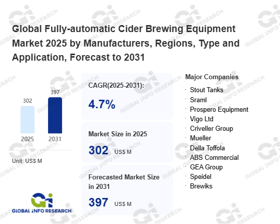 Global Info Research has recently published "Global Fully-automatic Cider Brewing Equipment Market 2026 by Manufacturers, Regions, Type and Application, Forecast to 2032". This report systematically analyzes the global Fully-automatic Cider Brewing Equipment market, providing multi-dimensional insights through type (Boiling System、 Fermentation System、 Mashing System、 Filtration System、 Others), application (Home Use、 Commercial Use), regional markets, and major manufacturers (Stout Tanks、 Sraml、 Prospero Equipment、 Vigo Ltd、 Criveller Group、 Mueller、 Della Toffola、 ABS Commercial、 GEA Group、 Speidel、 Brewiks、 Ss Brewtech、 Bucher Unipektin), assessing the market status, trend evolution, and competitive landscape impact from 2021 to 2032.