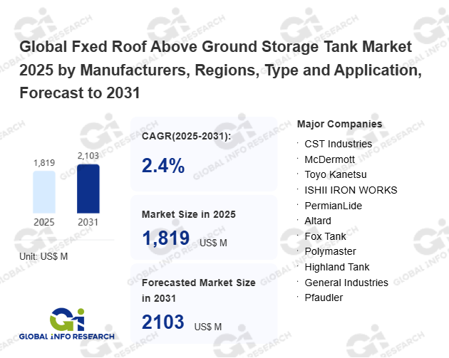 Global Info Research has recently published "Global Fxed Roof Above Ground Storage Tank Market 2026 by Manufacturers, Regions, Type and Application, Forecast to 2032". This report systematically analyzes the current status, future trends (2021-2032), and competitive landscape of the global Fxed Roof Above Ground Storage Tank market. It provides a quantitative analysis from the perspectives of type (Hazardous for flammable liquids、 Non-hazardous content、 Hazardous for other materials), application (Oil & Gas、 Chemical Industry、 Water & Wastewater、 Others), regional markets, and major manufacturers (CST Industries、 McDermott、 Toyo Kanetsu、 ISHII IRON WORKS、 PermianLide、 Altard、 Fox Tank、 Polymaster、 Highland Tank、 General Industries、 Pfaudler、 MEKRO、 Tank Connection、 CIMC), comprehensively assessing market opportunities and competitive dynamics.