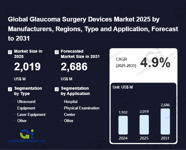 Global Info Research has recently published "Global Glaucoma Surgery Devices Market 2026 by Manufacturers, Regions, Type and Application, Forecast to 2032". This report systematically analyzes the global Glaucoma Surgery Devices market, providing multi-dimensional insights through type (Ultrasound Equipment、 Laser Equipment、 Other), application (Hospital、 Physical Examination Center、 Other), regional markets, and major manufacturers (Anteis SA Company、 Assenti、 Camras Vision Company、 Ellex Medical Lasers Limited Company、 Eye Sonix Company、 Geuder AG Company、 Medtronic plc Company、 Meir Medical Center Company、 Ocumatrx Company), assessing the market status, trend evolution, and competitive landscape impact from 2021 to 2032.